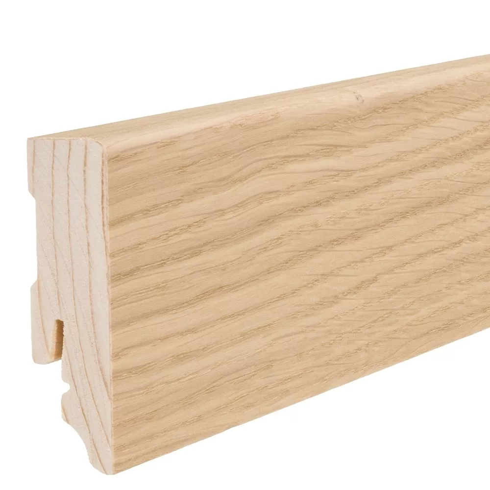 Grīdlīstes ar koka pamatni un gaiša ozola finierējumu, lakotas.