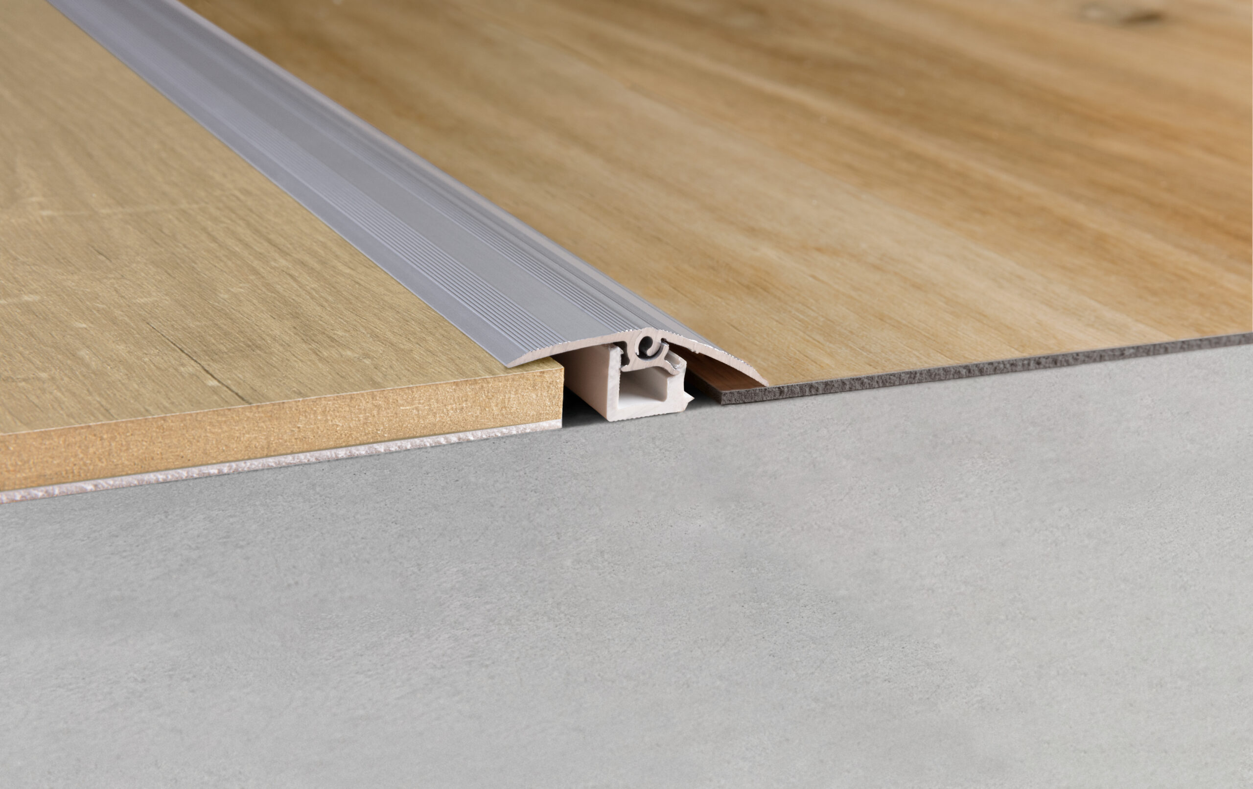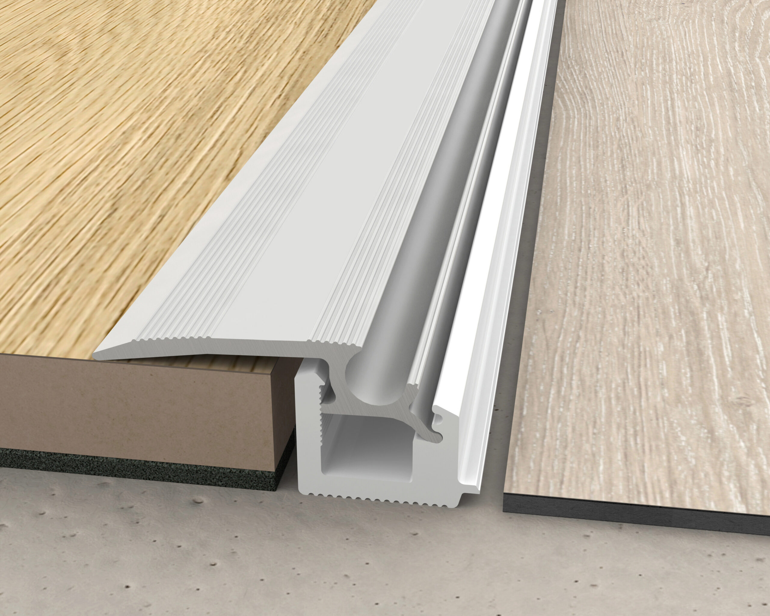 Izmantojams, piemēram, starp 2 Quick-Step lamināta grīdām, 2 Livyn grīdām vai starp lamināta vai Livyn grīdu un citu zemāku vai augstāku grīdu.