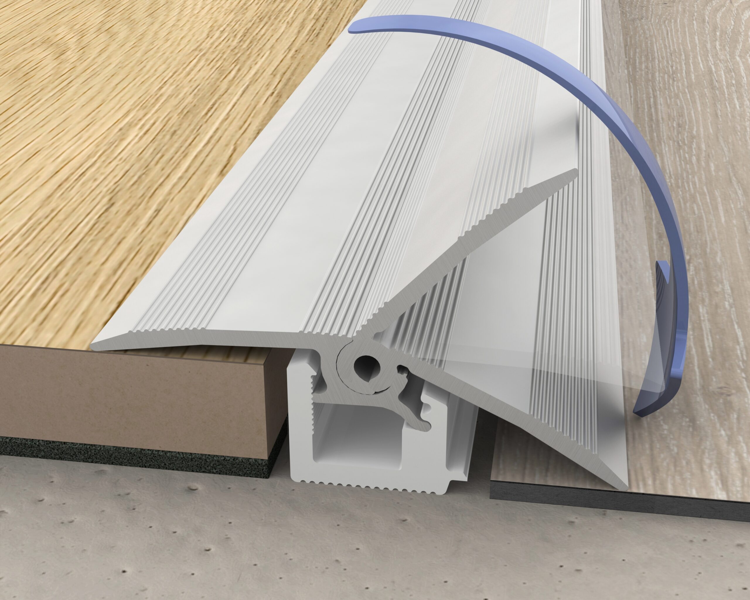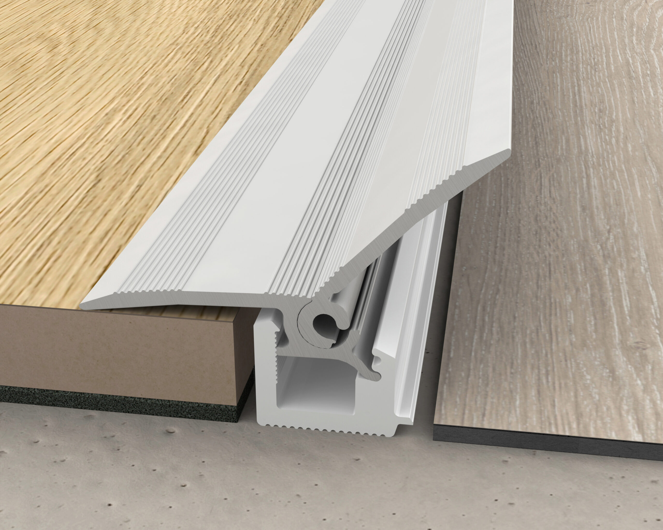 Profils, kas veidots no pret skrāpējumiem izturīga alumīnija, lai savienotu augstuma atšķirības no 0 līdz 12,3 mm.